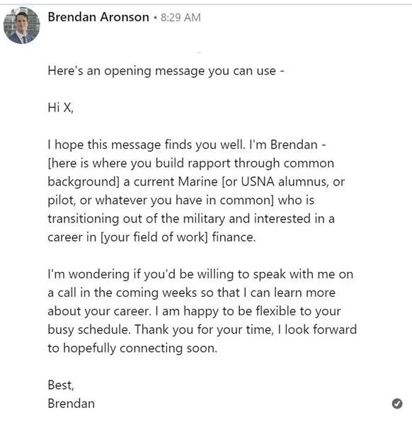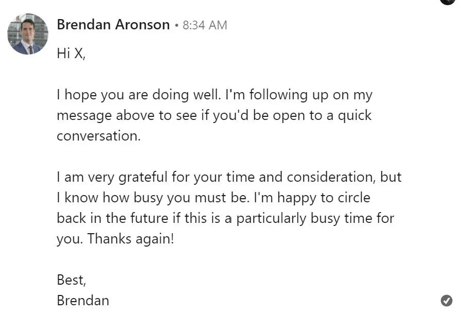 This simple message is short, to the point, courteous, and builds connection upfront. Did I mention being courteous?